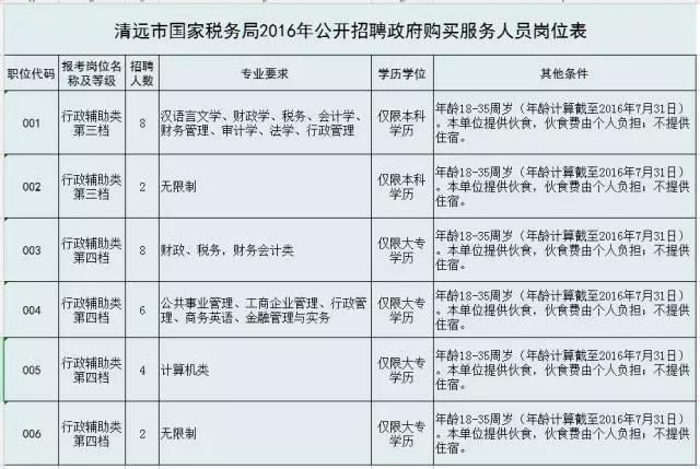 具體招聘職位和人數(shù)見《清遠(yuǎn)市國(guó)家稅務(wù)局2016年公開招聘政府購(gòu)買服務(wù)人員崗位表》(附件1)。
